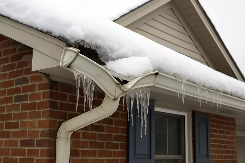 Homes across Central Indiana face a unique challenge during winter months. Indianapolis experiences frequent freeze-thaw cycles, where temperatures drop below freezing at night and rise again during the day. When water sits inside clogged or damaged gutters, it freezes and expands. This expansion can force gutter joints apart, loosen fasteners, and weaken fascia connections. Over time, this causes pitch misalignment, meaning gutters no longer slope correctly toward the downspouts.