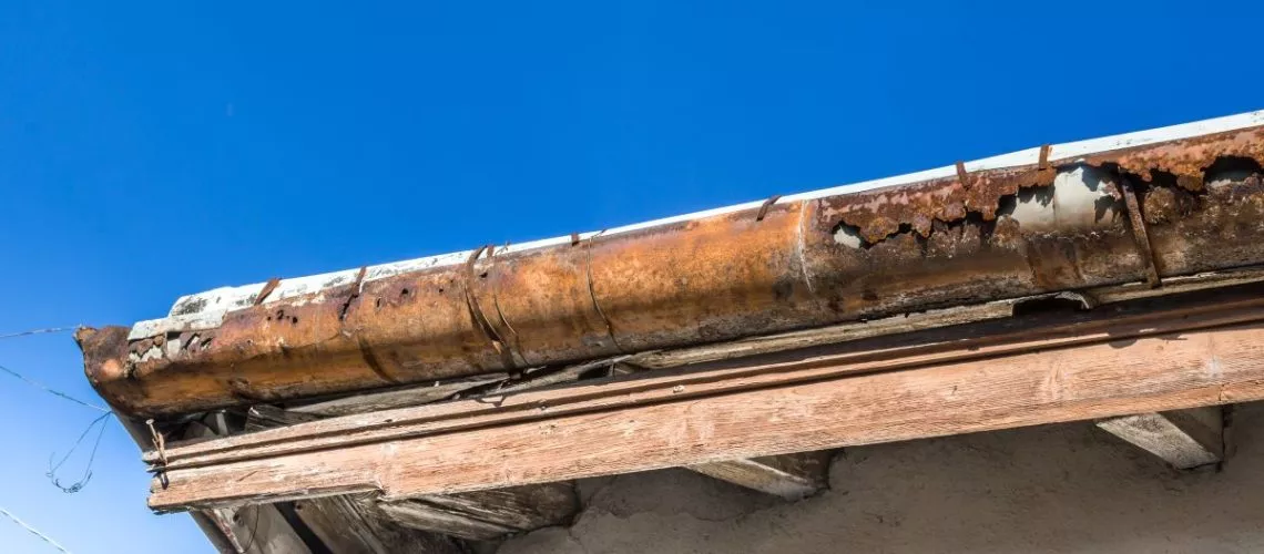 Seam leaks are common in older gutter systems. Water escaping through these joints can damage siding, landscaping, and fascia boards.